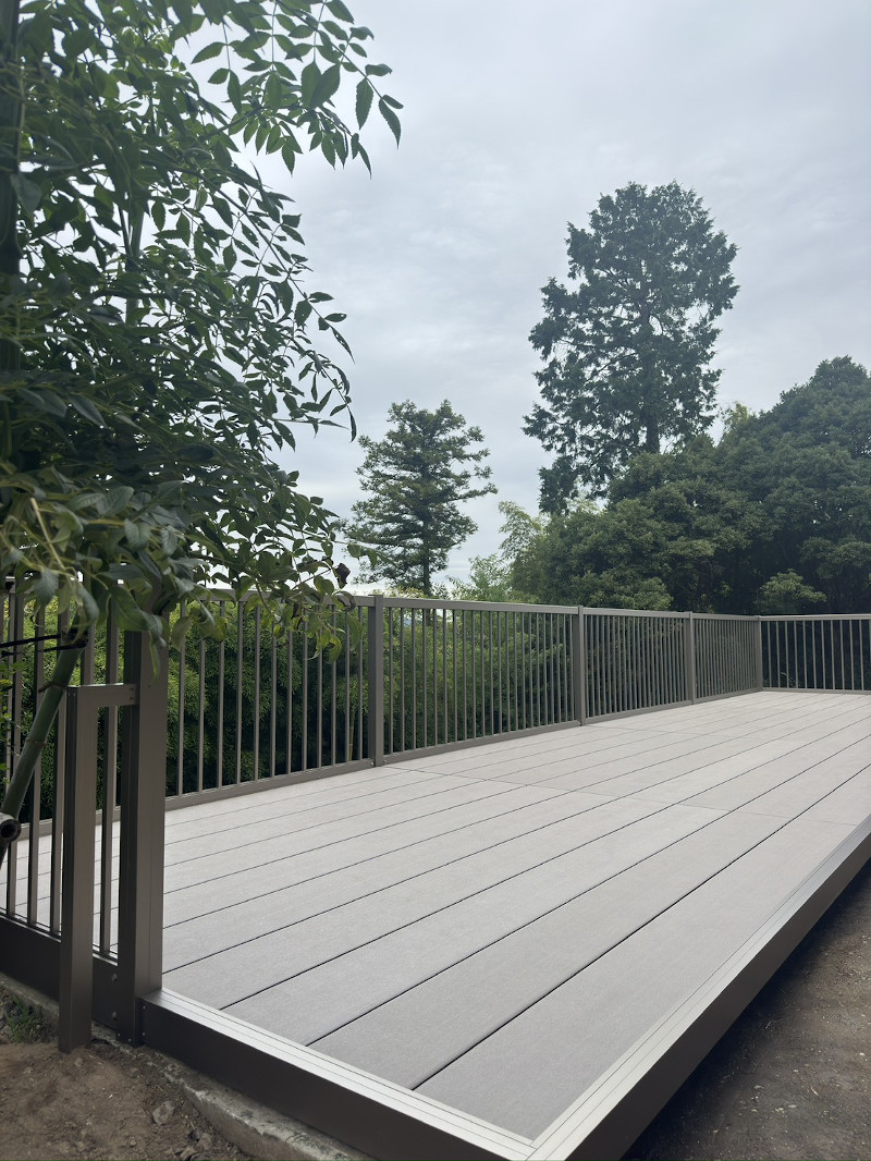 腐食していた木製デッキを、メンテナンスフリーの人工木に変更しました。