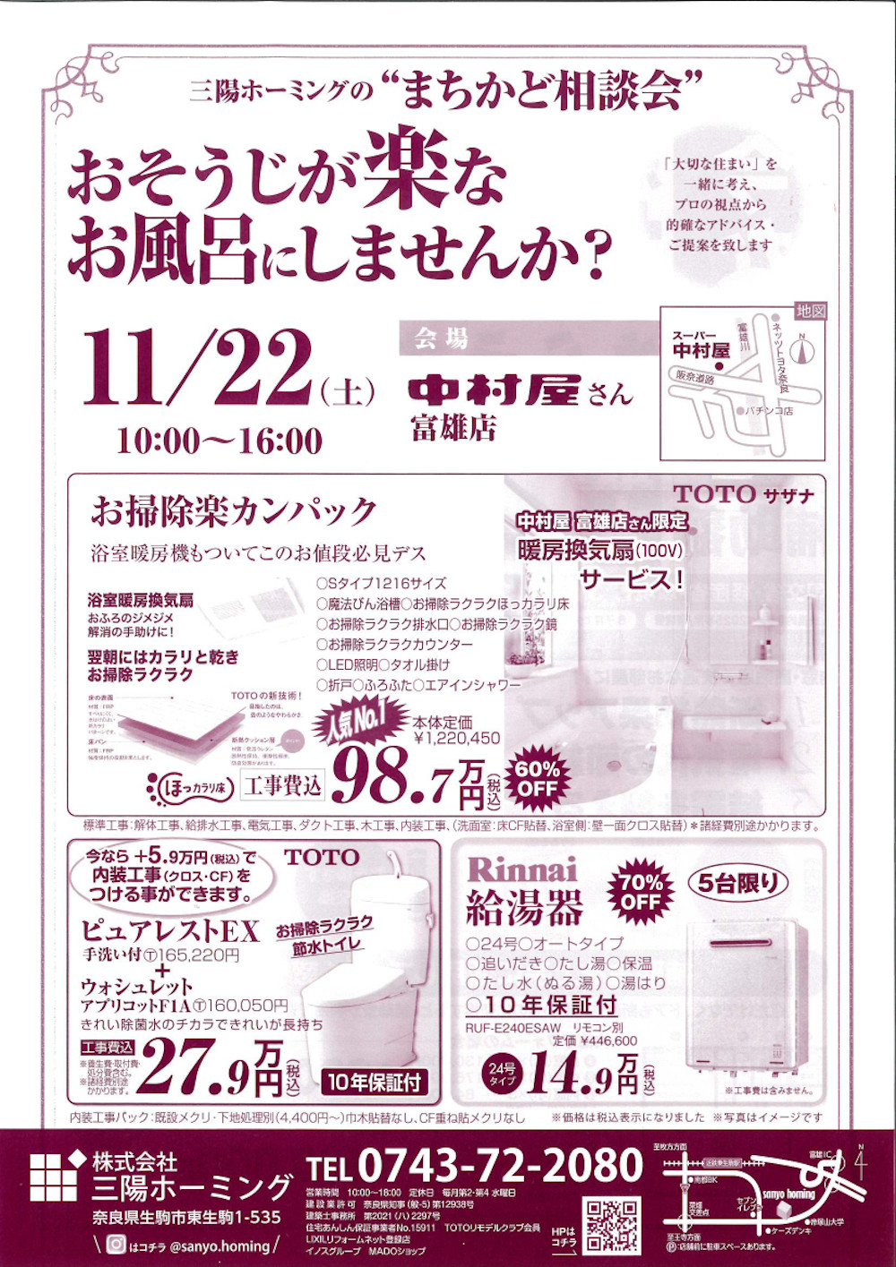 三陽ホーミングの『まちかど相談会』~おそうじが楽なお風呂にしませんか?~